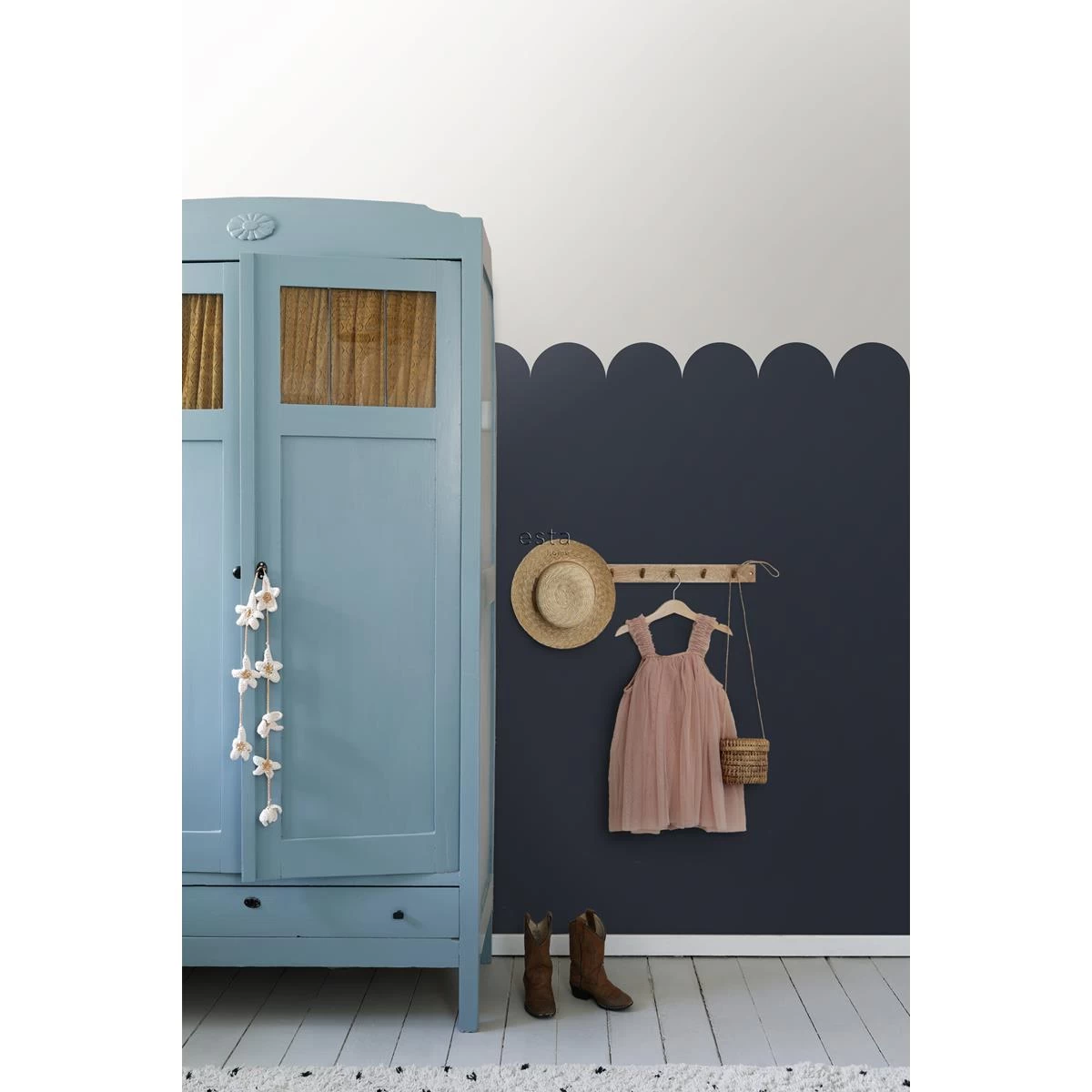 Creëer een fantastische kinderkamer met dit hippe kinderbehang met lambrisering in donkerblauw. Het behang zorgt voor een gezellige sfeer en je kunt het mooi combineren met lichte kleuren en natuurlijke materialen. Afmetingen, herhalin