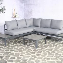 Het aluminium frame geeft de La Vida hoekset van Exotan een strak design. Aluminium is weerbestendig en onderhoudsarm. De set bestaat uit een koffietafel en drie losse elementen, welke gemakkelijk aan elkaar te koppelen zijn.
