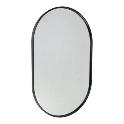 Gave ovale spiegel met zwart metalen rand. Door de subtiele en stoere afwerking komt de spiegel aan iedere muur tot zijn recht!