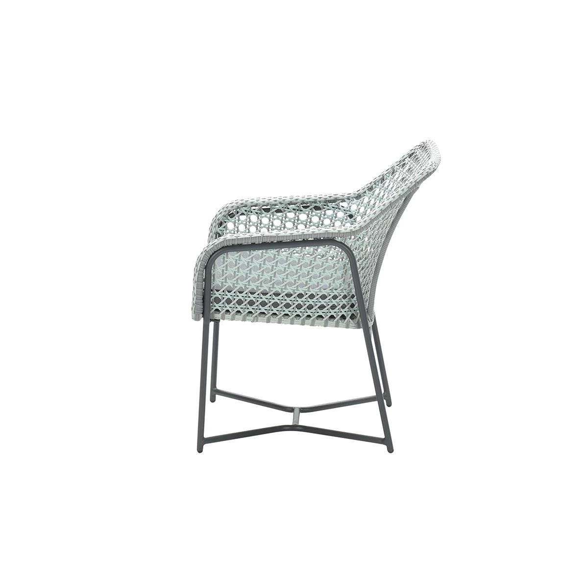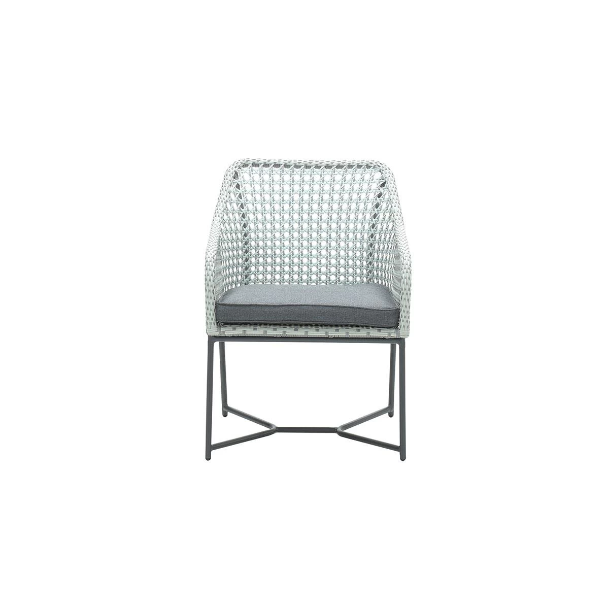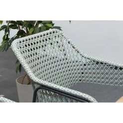 De Timmy tuinstoel heeft een aluminium frame en een afwerking van zachtgroen wicker. Tuintafel Leuven is volledig van aluminium. Afmeting stoel: 69 x 61 x 80,5 cm. Afmeting tafel: 220 x 100 cm.