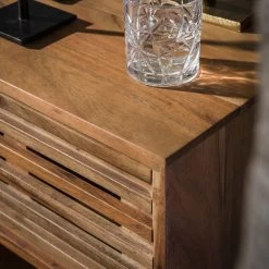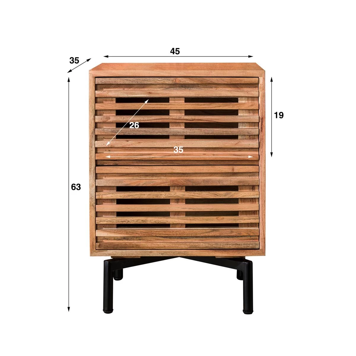 - Dit nachtkastje ‘slide’ is uitgevoerd in acaciahout.