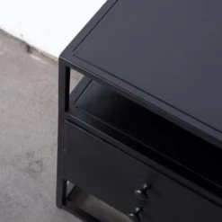 - Dit nachtkastje is 60cm hoog en 40cm breed. Nachtkastje Joëll is gemaakt van metaal en heeft een zwarte coating.