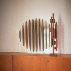 Met zijn brutalistische vorm en speelse compositie is dit ornament van HKliving een opvallend accessoire. Het ontwerp is geïnspireerd op de skylines van de stad. Gemaakt van teakhout en passend in verschillende woonstijlen, van modern tot Japandi.