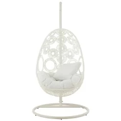 Hangstoel+Kussens Bula Metaal/Riet Wit