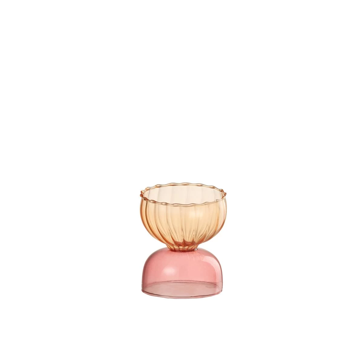 Kaarshouder Halve Ballen Glas Licht Oranje/Roze