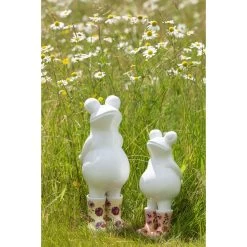 Deze schattige kikker draagt een paar felgekleurde oranje schoenen met bloemen. Het beeld is gemaakt van keramiek en heeft een heldere, levendige uitstraling. Het beeld heeft een afmeting van 11x9x24cm en is een leuke decoratie voor in huis.Specificaties:• Merk: J-Line• Kleur: Wit/Oranje• Materiaal: Keramiek• Afmetingen: 11x9x24cm