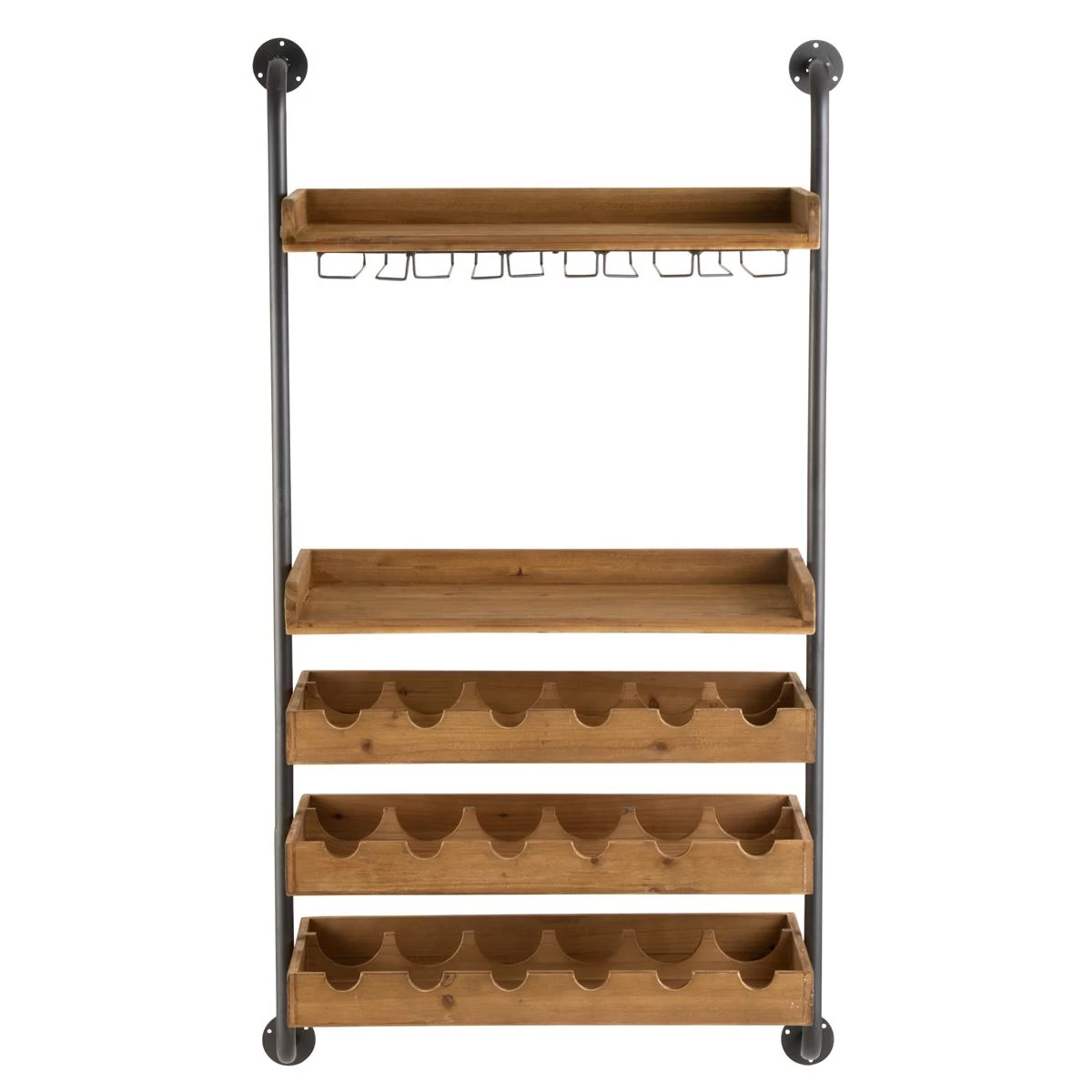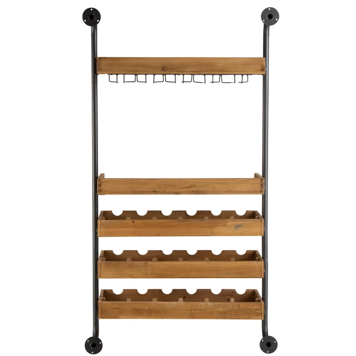 Muur Rek Voor Wijnflessen+Glazen Hout Naturel