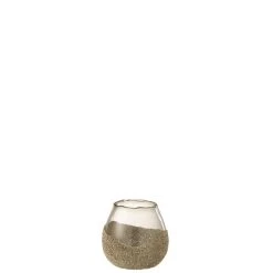 Theelichthouder Helft Parels Rond Glas Goud Small
