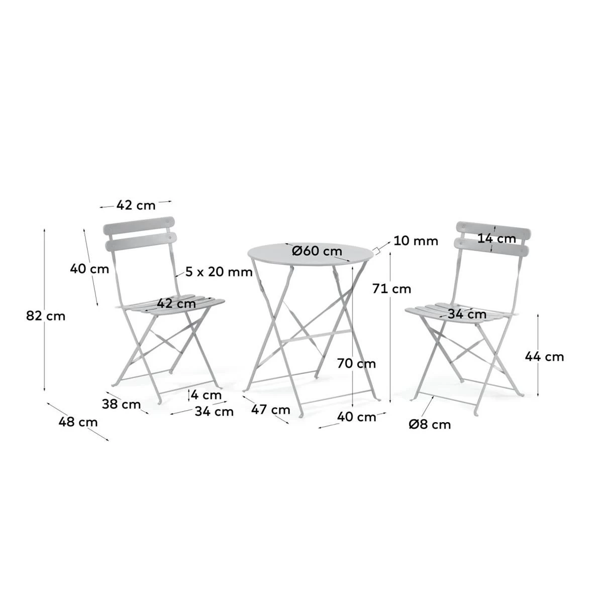 - Set van twee klapstoelen en een tafel, geschikt voor buiten en ideaal voor kleine ruimtes.