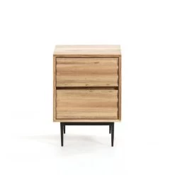 Het Delsie nachtkastje heeft een natuurlijke afwerking en is gemaakt van massief, natuurlijk acaciahout. Het is met de hand gemaakt. Ook het decoratieve detail van de deuren is met de hand gemaakt, waardoor een origineel effect van verschillende diep tes ontstaat. De poten zijn gemaakt van zwart gelakt metaal, een perfecte afwerking om te combineren met dit hout. Als u een exclusief meubel wilt hebben, heeft u het al gevonden. Elk Delsie nachtkastje is uniek, met een ander veto in elk hout.