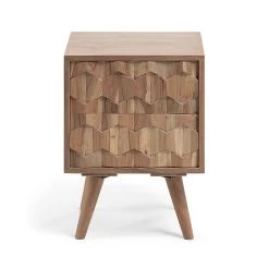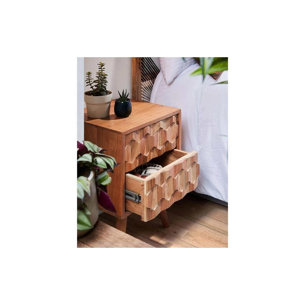 Hoe je bed ook staat je zult altijd willen dat de Khaleesi dichtbij is. Een nachtkastje van massief acaciahout met een uniek ontwerp, geïnspireerd op de zichtbare geometrische vormen die in het hout zijn uitgehouwen om diepte te creëren.
