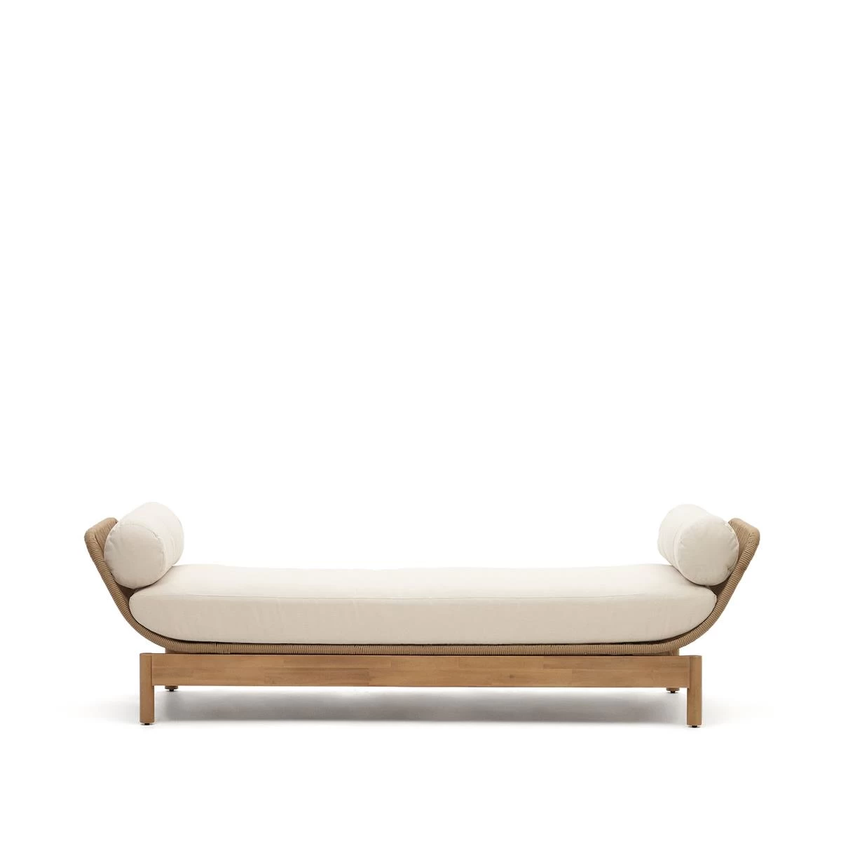 Ligstoel Catalina beige van touw en massief acaciahout FSC