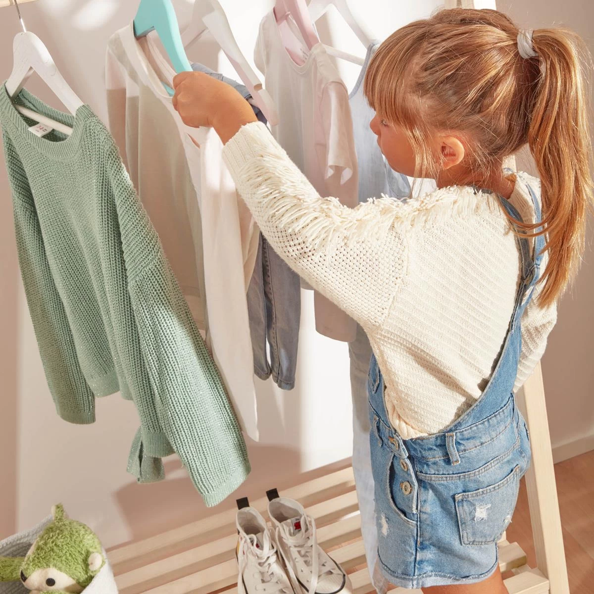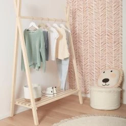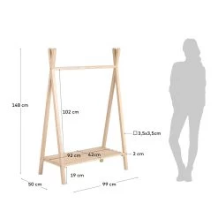 Dit Kave Home Maralis tipi kledingrek is een decoratieve en praktische aanvulling op de kinderkamer! Met deze tipi leren de kinderen hoe ze hun kamer netjes moeten houden. Het kledingrek heeft een stang en een legplank onderaan. Top!