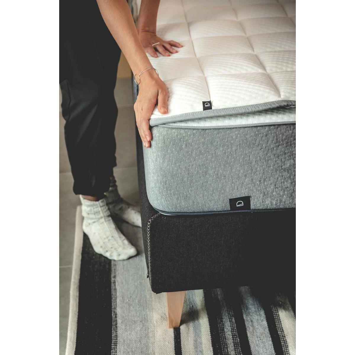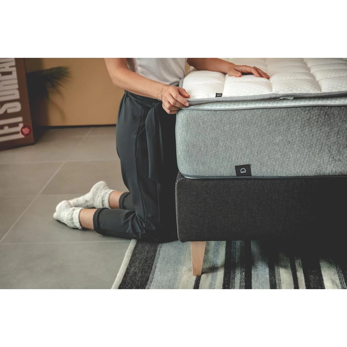 Nikos hoge bedbodem in zwart met massief beukenhouten poten voor een matras van 160 x 200