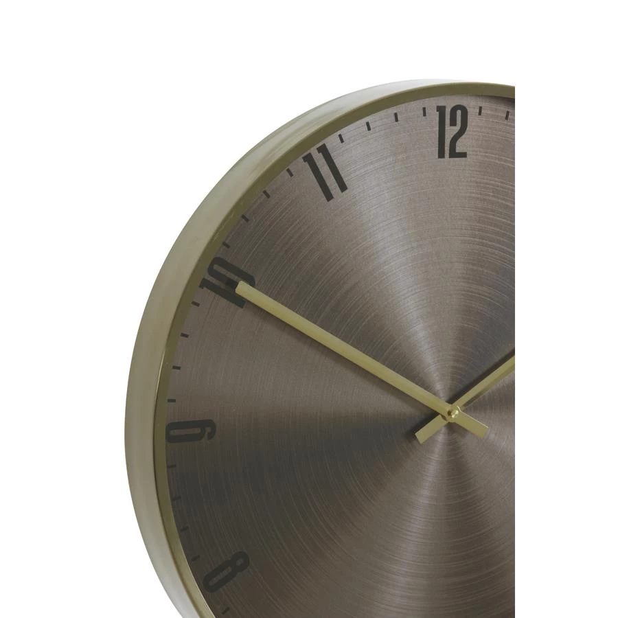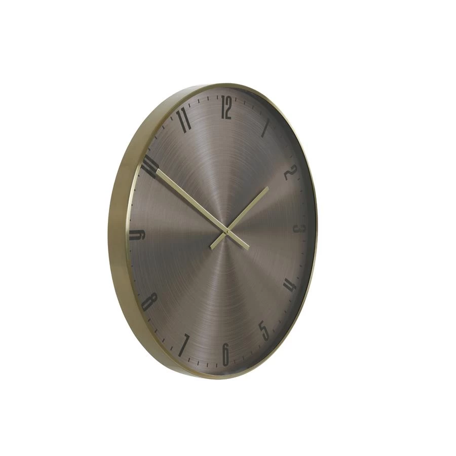 De klok heeft een diameter van 74 centimeter. De klok heeft een bronskleurige achterplaat met een metallic parelmoer effect en een bronzen rand.