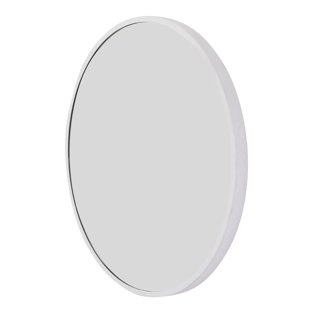 Luxe robuuste ronde industriële spiegel met een mat wit metalen rand. Door de neutrale vorm is de spiegel subtiel maar stoer.