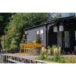Onze okergele Max tuinset 150 cm is dan perfect. Waarom vraag je je af? De rondingen in het gele metalen zitvlak en rugleuning van de stoel zorgen voor maximaal comfort. Daarnaast is de rugleuning extra hoog (81 cm), de zitting extra breed (54 cm) en kan tot 150 kg iedereen op de stoel zitten. Avond ten einde? In een mum van tijd stapel je de stoelen op elkaar en is alles opgeruimd!