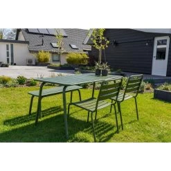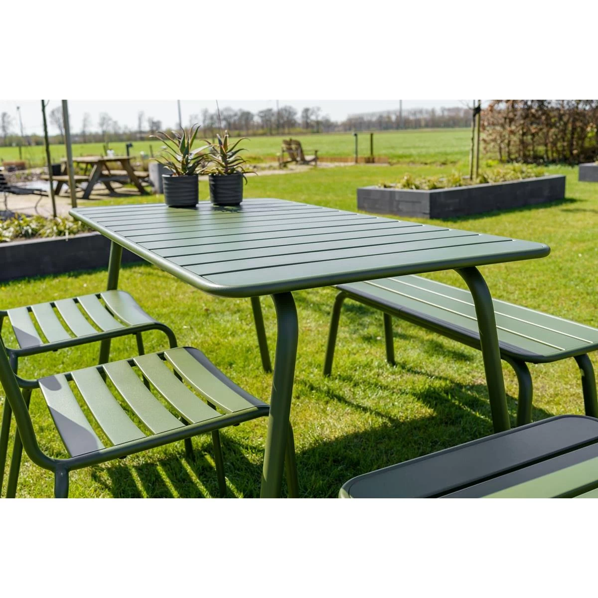 Onze Max familie is compleet met de nieuwe tafels! Hoe leuk is het dan ook om een set in je tuin te hebben met zowel Max stoelen, een Max tafel en een Max bank. In de trendy kleur legergroen is het echt een aanwinst voor je tuin. Naast de trendy uitstraling is het comfort van onze Max serie ook erg hoog. De ronde frames in zowel stoel als bank zorgen ervoor dat je heerlijk zit en met het extra brede zitvlak is er plek voor iedereen!