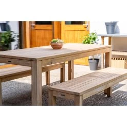De teak picknickset Java is ook prima binnen te gebruiken. De tafel heeft een hoogte van 77 cm en is hiermee geschikt voor vrijwel alle stoelen. De banken van 120 cm kunnen volledig onder de tafel worden geschoven.