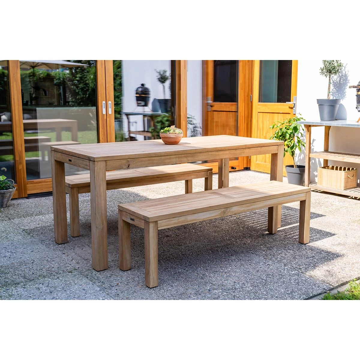 - Teak tafel, banken en stoelen ook los leverbaar
