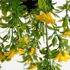 Klaar om zorgeloos te genieten? De kunstplanten van Mica Decorations zijn niet van echt te onderscheiden, maar hebben geen enkel onderhoud nodig. Deze Margriet kunst hangplant valt op door de mooie gele bloemen en de kleine groene blaadjes. Net echt…