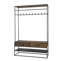 Een opgeruimde, strakke hal begint bij dit MOOS Nino Garderoberek. Naast vele haken heeft Nino ook nog eens een roede, drie planken én twee lades! Het robuuste hardhout in combinatie met het metalen frame zorgt voor een moderne en industriële look.