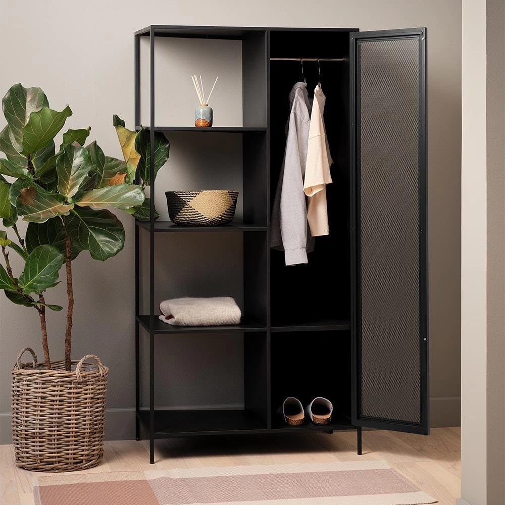 - Door het gebruik van metaal heeft de kast een stoere en industriële uitstraling