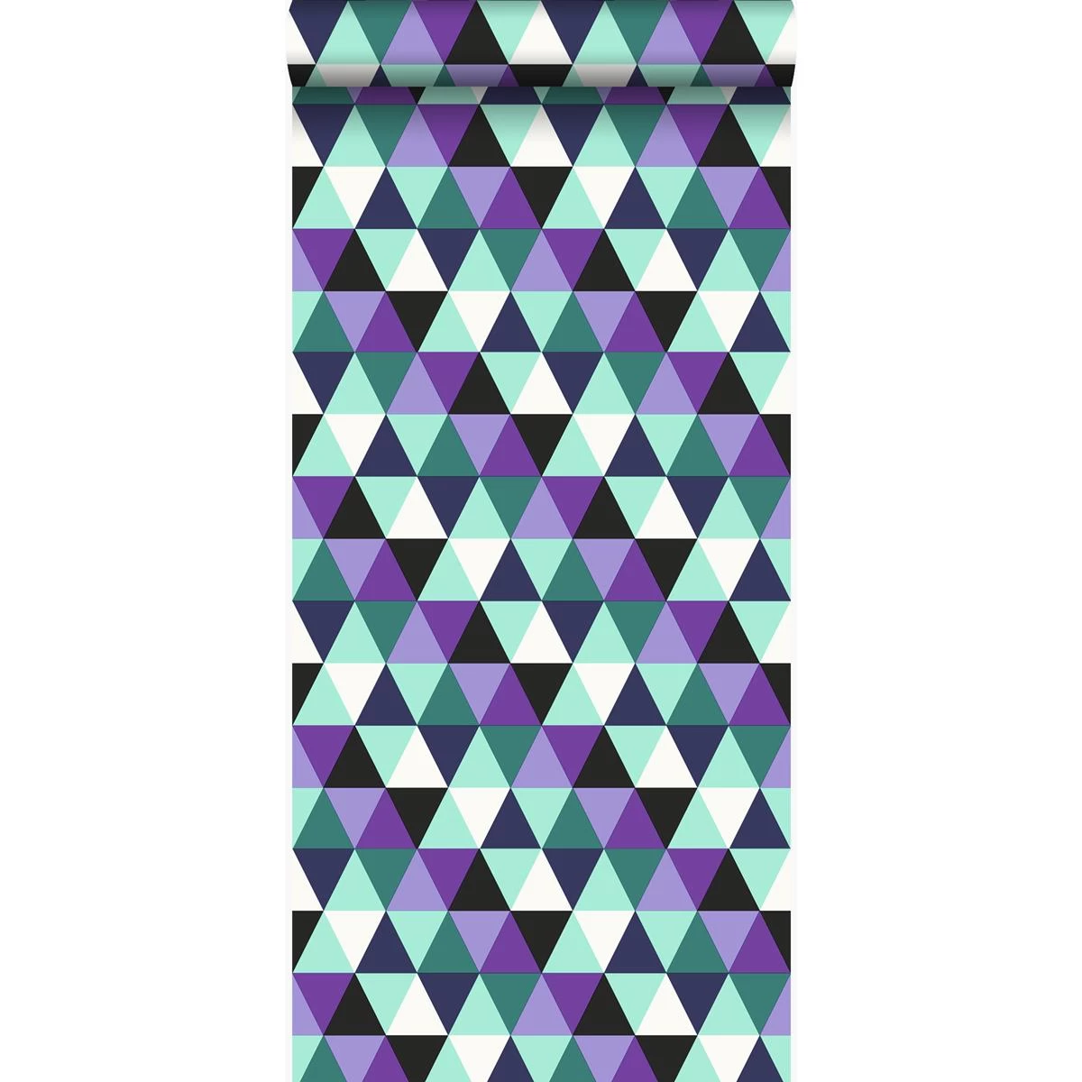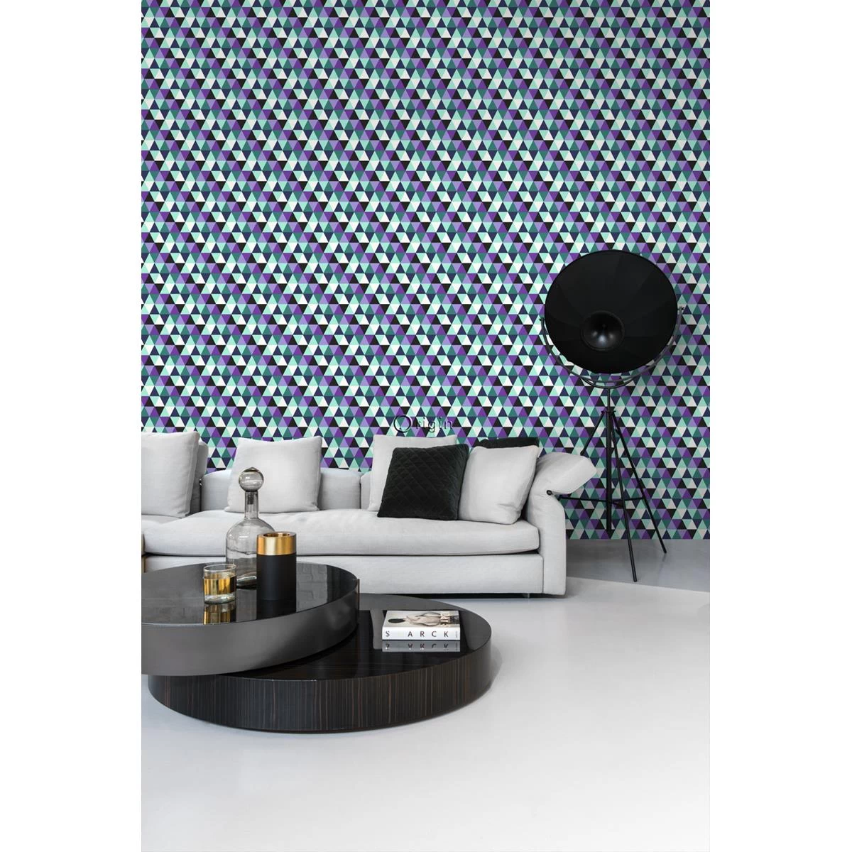 - Je vindt dit behang met grafische driehoeken in paars en licht azuurblauw (347204) in de collectie Urban Funky.