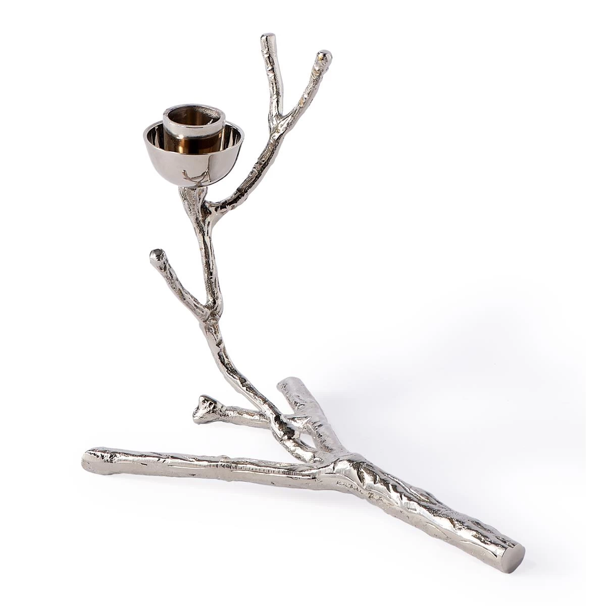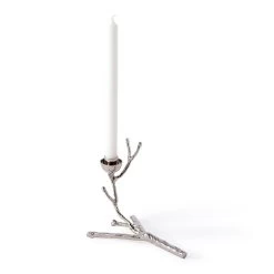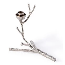 Volgens POLSPOTTEN kan het altijd aparter. Kijk maar eens naar deze kandelaar. Zo zie je ze niet vaak! Het bijzonder creatieve ontwerp is gemaakt van messing en heeft een coating van nikkel. Een waar pronkstuk voor op tafel of een dressoir!