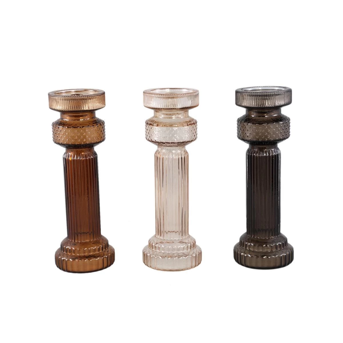 PTMD Kandelaar Fadri – 11x11x34 cm – Glas – Grijs