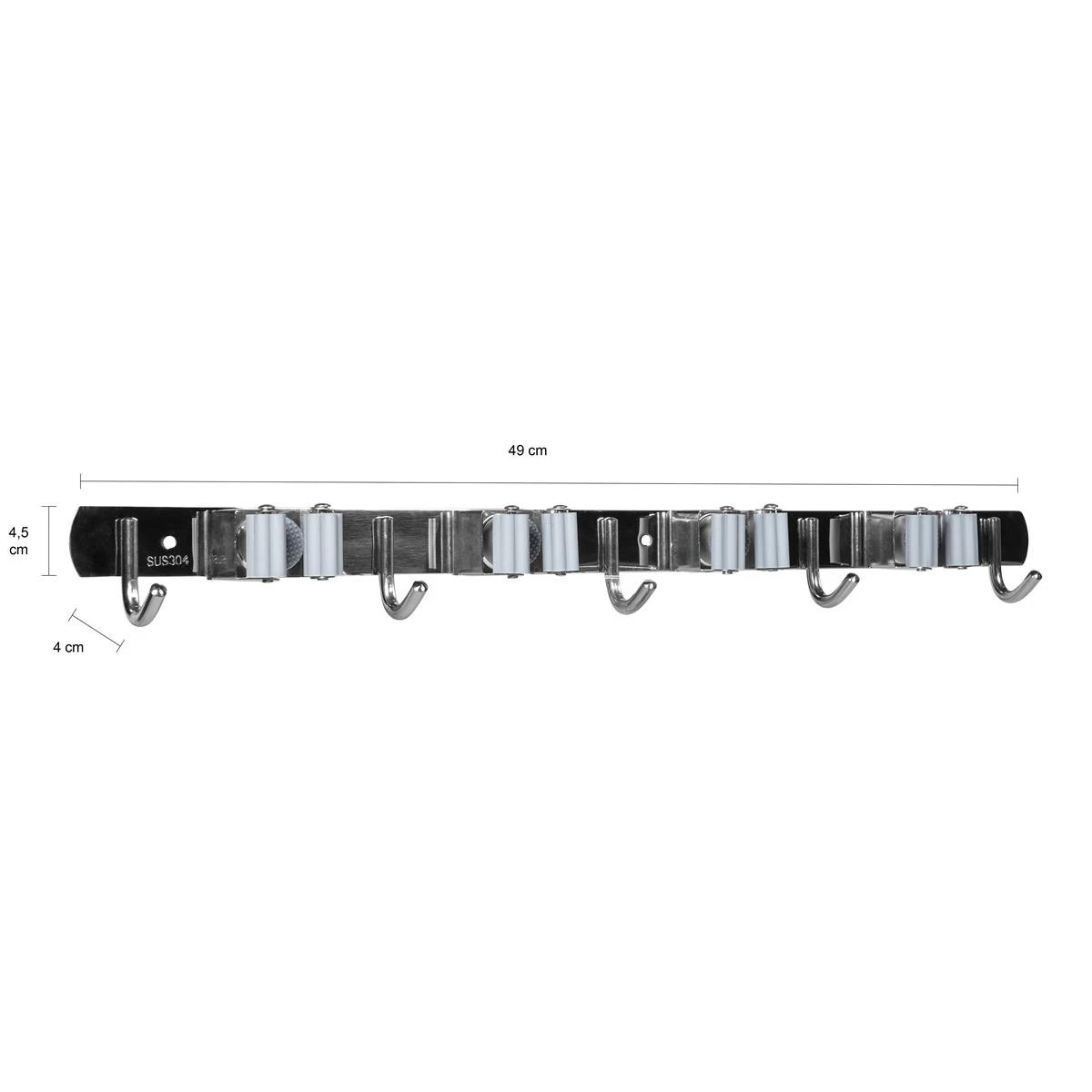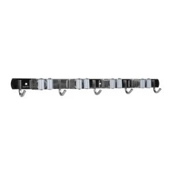 Met 4 klemmen voor bezems, dweilen en harken en 5 haken voor bijvoorbeeld stoffer en blik en tuingereedschap kun je al jouw benodigdheden kwijt. Zo hoef je nooit meer bang te zijn dat je over de bezem struikelt en bespaar je veel vloerruimte.