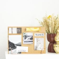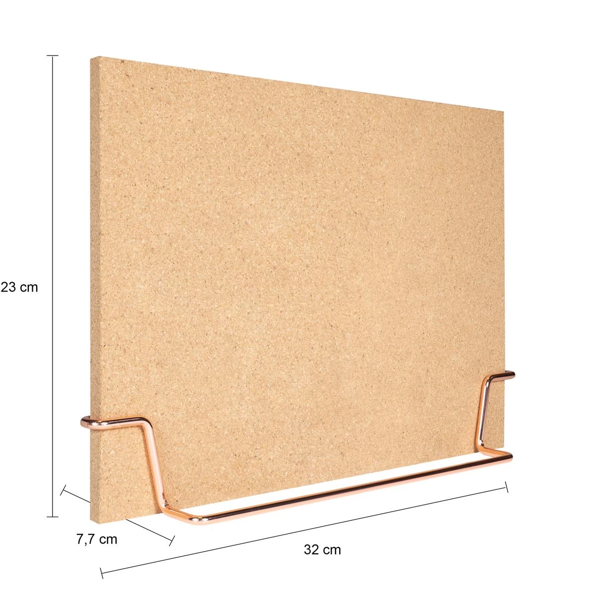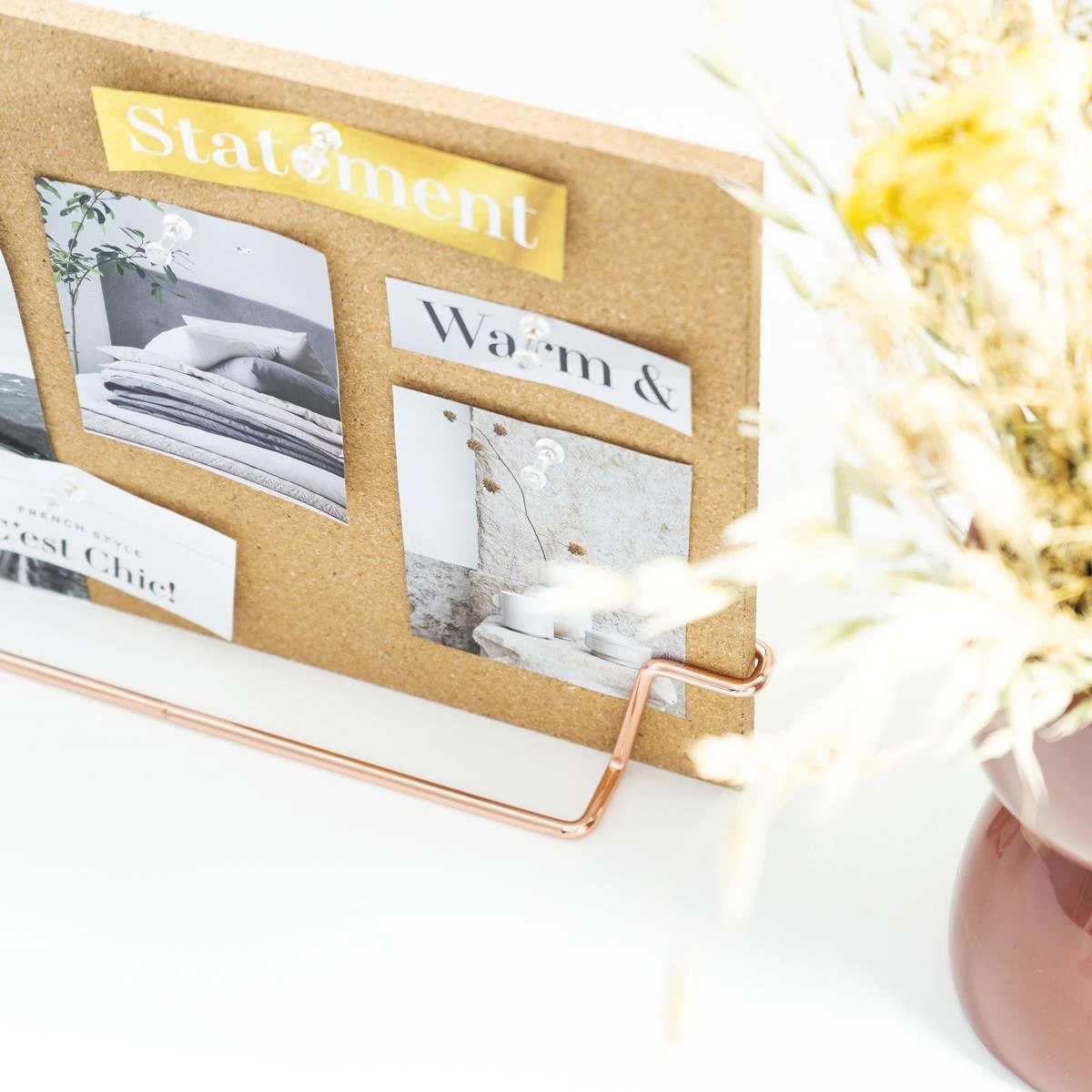 - Het mini prikbord van kurk is in een handig frame van draadstaal geplaatst.
