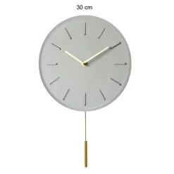 Deze zeer klassieke QUVIO Wandklok met slinger kan een kamer een stuk mooier en eleganter laten ogen. De wandklok is gemaakt van beton en heeft een slinger met goudkleur. De klok heeft een diameter van 30 cm.