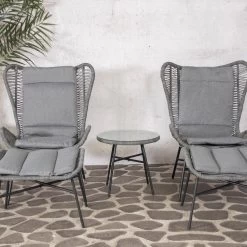 De stoelen in de fijne Milan tuinset van SenS-Line zijn in feite ouderwetse leunstoelen in een trendy jasje. Een leuke bijkomstigheid van het touw is dat het heerlijk zacht zit. Dit heeft natuurlijk ook te maken met de zachte kussens. Genieten maar!