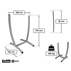 Zeer stevige metalen hangstoelstandaardDit is de stevigste metalen hangstoelstandaard die verkrijgbaar is. De buizen hebben een extra grote diameter en de speciale constructie zorgt voor meer stabiliteit en kan