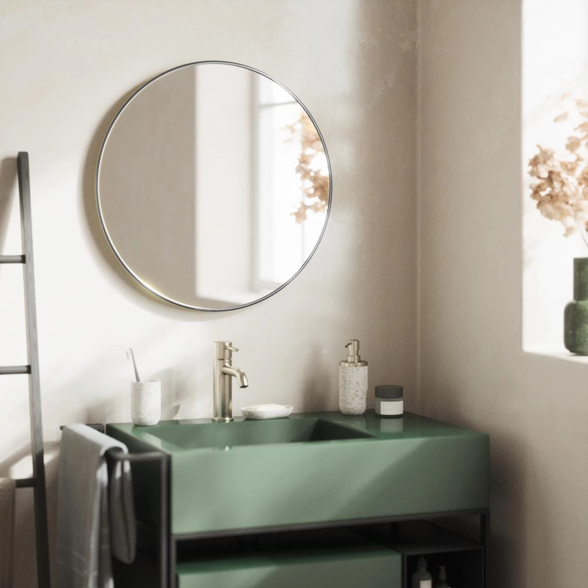 - Ronde wandspiegel met een diameter van 61 cm