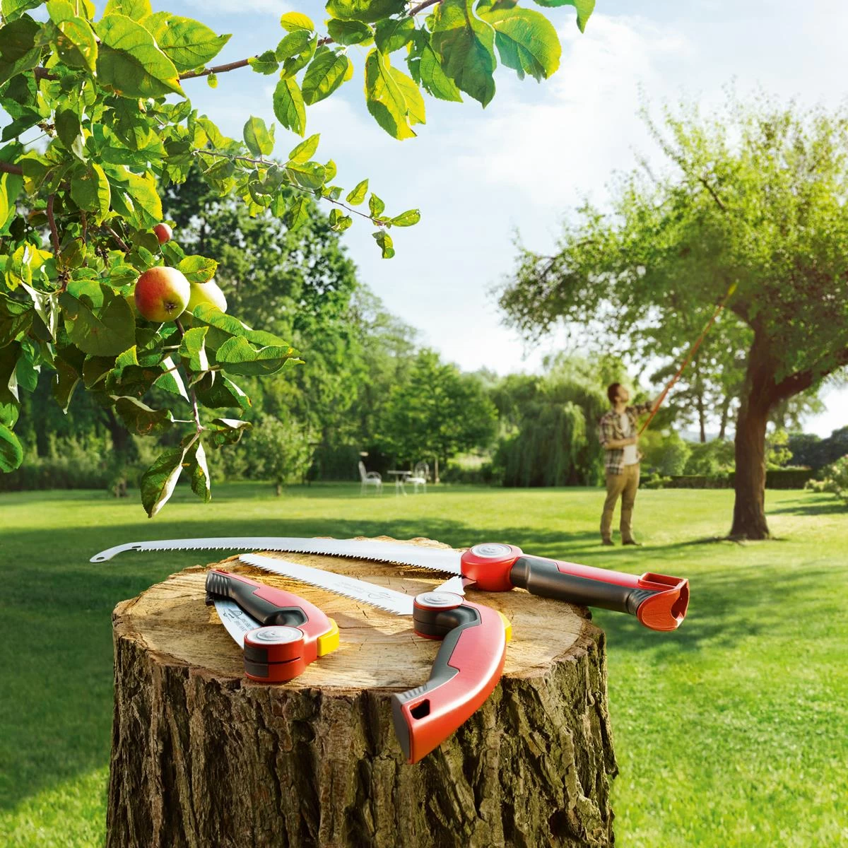 De Wolf-Garten MultiStar Powercut Saw Pro 370 zorgt dankzij het gebogen zaagblad voor moeiteloos en krachtig zagen van dikke takken. Het mes heeft een lengte van 37 cm. Het mes is voorzien van een handige takkenhaak en schorsbeschermer.