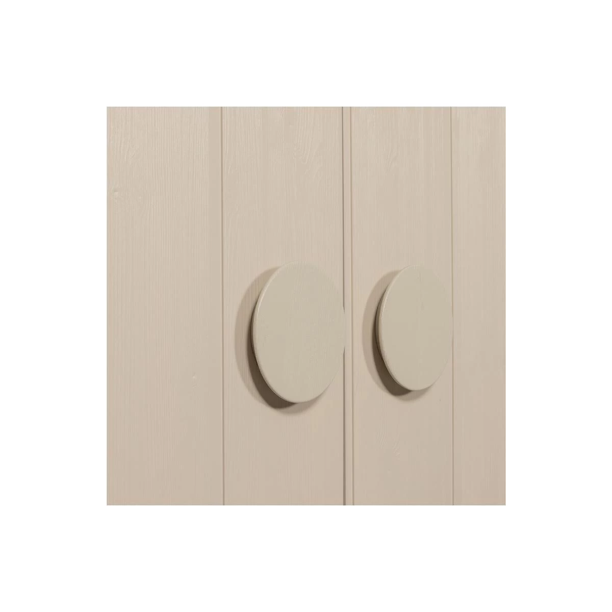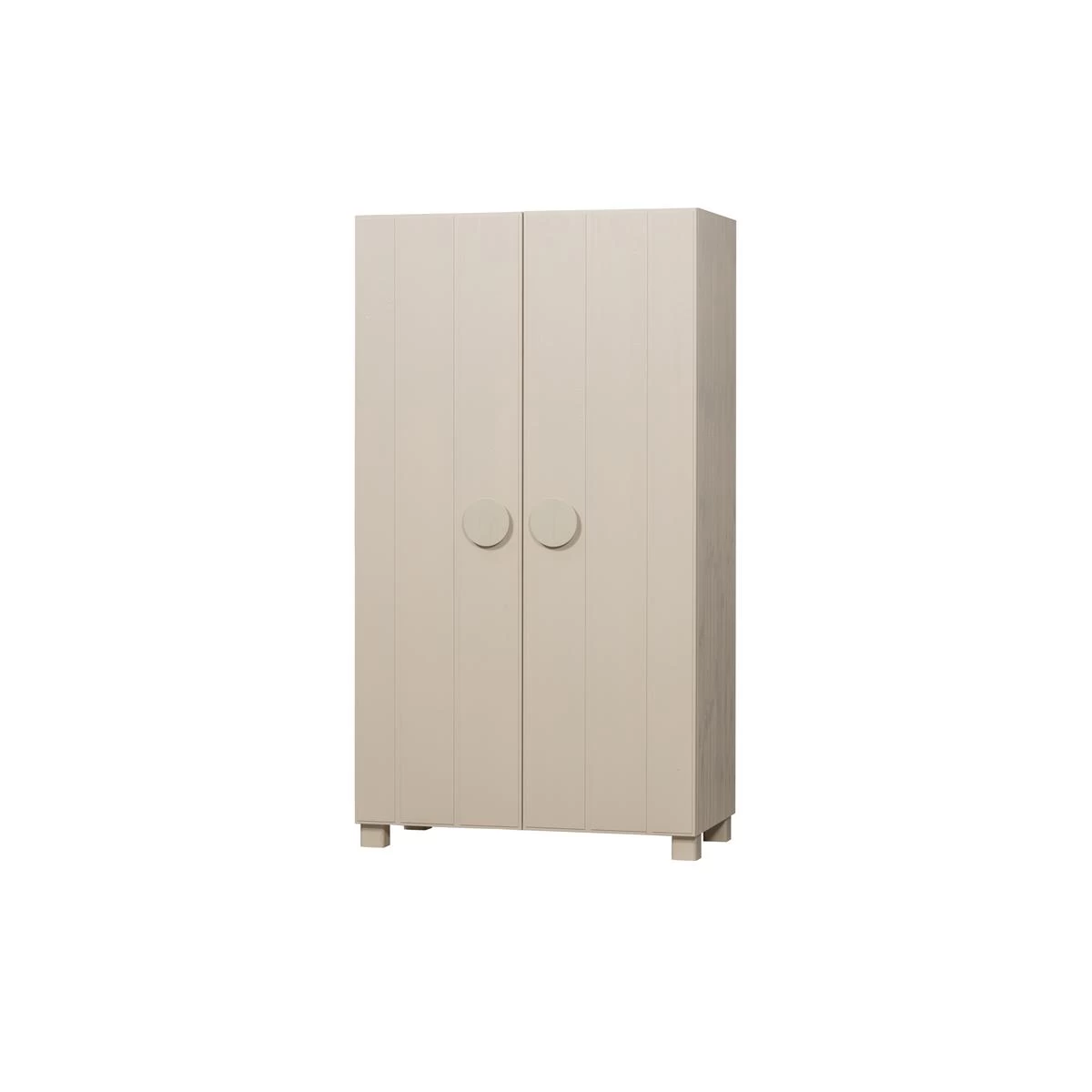 De Noah 2-deurs kast is gevormd uit geborsteld grenenhout afgewerkt in een frisse kleur: dust. Het interieur is uitgevoerd in onbehandeld, blank grenenhout. De achterzijde van de kast is gemaakt van geperst HDF materiaal met een dust-kleurige afwerking.