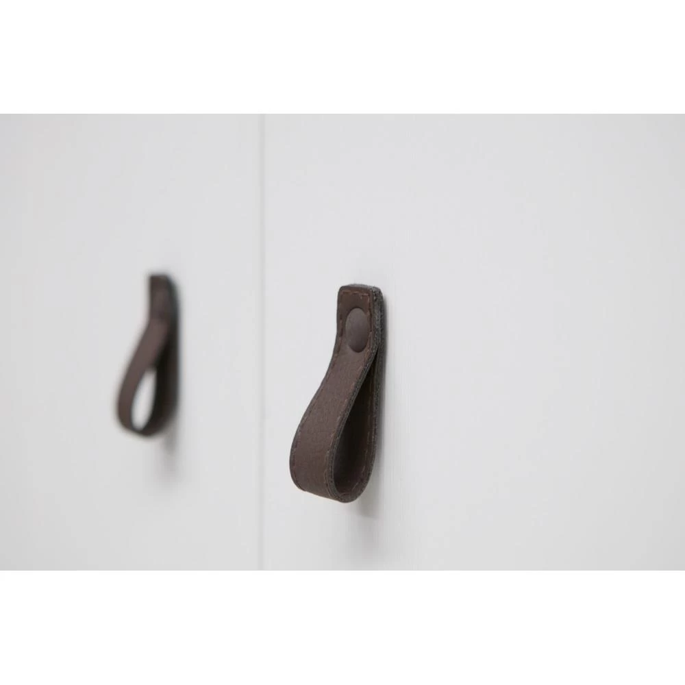 - De kast heeft een geborstelde afwerking en de deuren hebben 2 verticale v-groeven.